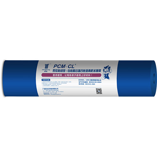 PCM-CL反應(yīng)粘結(jié)型自粘聚合物改性瀝青防水卷材有兩種類型,一種是由合成橡膠和樹脂改性瀝青中加入特殊改性劑,聚酯胎為胎體,聚乙烯膜為表面材料或無膜(雙面自粘),采用硅油防粘隔離膜制成的:另一種是由PET聚酯膜(鍍鋁、鋁塑復(fù)合)、自粘橡膠瀝青料、硅油防粘隔離膜組成。