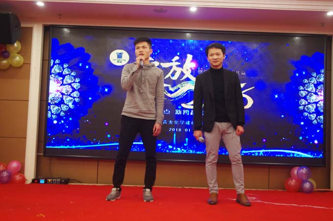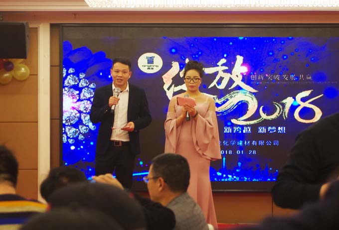 年會在公司董事長宋董的致辭中,拉大盛幕。宋董總結了2017年公司的收獲,公司整體業(yè)務增長30%以上,成長趨勢好;特別是8月26日以來,新成立的家裝事業(yè)部,新零售店招商勢頭發(fā)展迅猛至1月份,合作及加盟商將近100家。同時展望2018,希望大家一起努力,讓公司更快更好的發(fā)展。特別是家裝提出招募目標500家新零售加盟商,達到行業(yè)一線品牌。對工程防水和GRC業(yè)務,也提出了目標整體在2017年的基礎上30%以上增長,要實現(xiàn)公司業(yè)務結構跨越式發(fā)展步伐。青龍公司籌劃上市鼓舞著每一位青龍員工士氣,為防水事業(yè)做出不懈努力,帶領大家賺大錢。