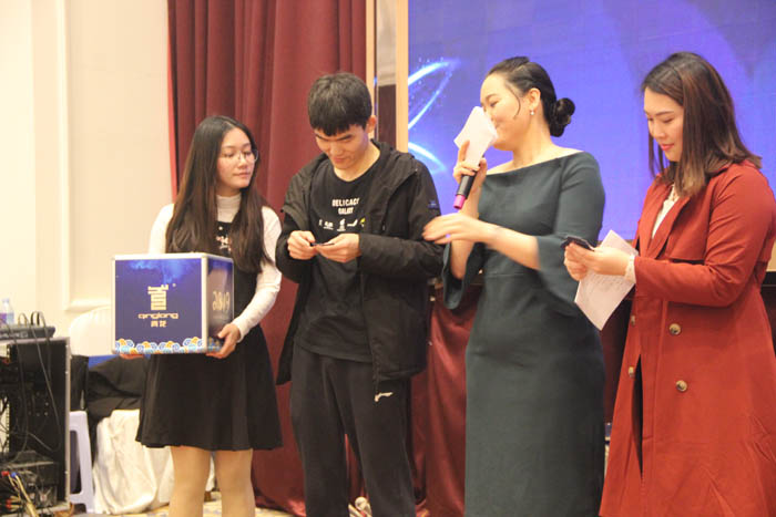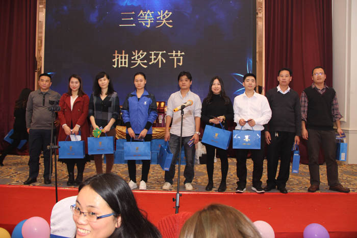 除了精彩的文藝節(jié)目,更讓人充滿期待的當然是晚會標配的抽獎啦!今年公司為大家準備了微信搖一搖、精美實物獎勵、微信紅包和現(xiàn)金紅包等等多項多種大獎,主持人每一次的報獎都讓大家小心臟撲通撲通的跳,充滿希望,中獎者喜不自勝!一輪又一輪大獎也將年會推向高潮,大家都非常的興奮,歡快!