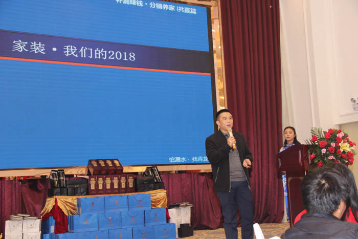 青龍家裝防水事業(yè)營銷總監(jiān)于超軍作《家裝,我的2018》總結報告,簡要分析了2018年青龍家裝防水市場開發(fā)情況及存在的問題,對2019年的重要工作作了部署,召開大家同心同德,再創(chuàng)輝煌!