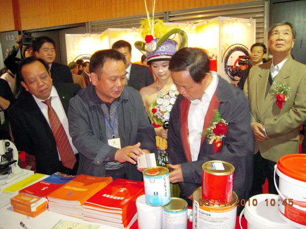 青龍公司圍繞低碳、節(jié)能、環(huán)保的主題,重點(diǎn)展出了保溫砂漿、防水卷材和防水涂料等三種產(chǎn)品,這也是公司的拳頭產(chǎn)品。當(dāng)?shù)卣I(lǐng)導(dǎo)對(duì)青龍品牌和青龍公司創(chuàng)造的社會(huì)效益和經(jīng)濟(jì)效益給予了高度評(píng)價(jià),會(huì)上,陸兵主席和廣西青龍公司副總曾知博進(jìn)行了親切交談,并饒有興致的參觀了青龍展區(qū),了解青龍產(chǎn)品。