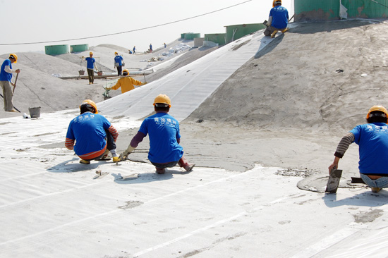 由于項目的重要性,建設(shè)方對時間和質(zhì)量提出了高標(biāo)準(zhǔn)、嚴(yán)要求,不但要求材料優(yōu)良,技術(shù)過硬,而且必須具有快速施工的能力。10月份,偏逢海南遭遇歷史罕見暴雨,無法正常施工,給青龍公司帶來了最為嚴(yán)峻的考驗。為了確保工程如期完成,青龍公司擴大施工隊伍,120余名建設(shè)者加班加點,堅守崗位,全力以赴,打造好的細(xì)節(jié)。從成品出庫、物流、施工、檢驗、后勤保障等,每一個細(xì)節(jié)爭分奪秒。在青龍人的精心操作和不懈努力下,工程如期完成,10萬平方米的保溫層已順利通過驗收,工程質(zhì)量監(jiān)督負(fù)責(zé)人和市級領(lǐng)導(dǎo)多次考察,對青龍能在如此巨大壓力下的超常施工能力表示贊嘆。目前正在進行防水抗裂層及屋頂GRC工程安裝,預(yù)期春節(jié)前完工。