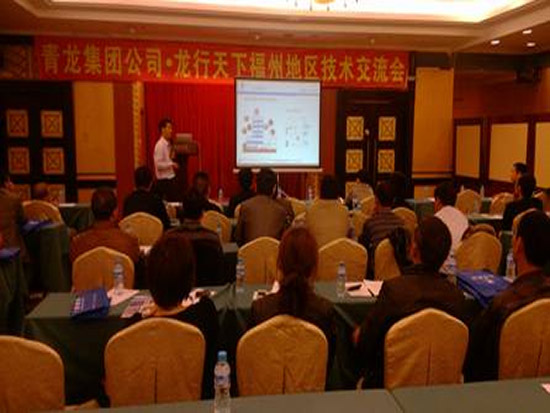 在兩個(gè)半小時(shí)的推廣會(huì)中,青龍建材集團(tuán)營(yíng)銷(xiāo)總監(jiān)王定中以福州的建材市場(chǎng)的現(xiàn)狀為例,為大家解析了建材行業(yè)未來(lái)的發(fā)展前景,并就青龍建材公司“一個(gè)品牌,四門(mén)生意”的招商加盟政策做了詳細(xì)的介紹。福建大區(qū)域經(jīng)理周炳陽(yáng)工程師則深入地剖析了青龍牌
