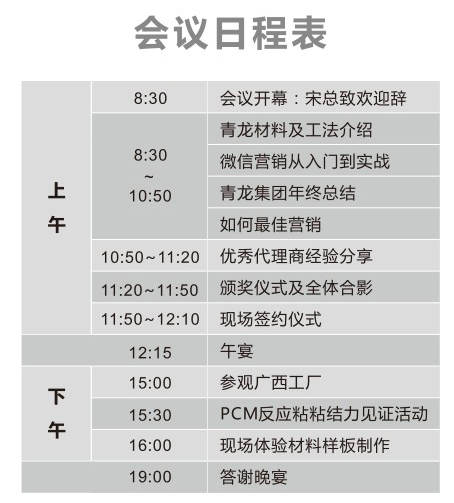 本次會(huì)議的對象為青龍集團(tuán)全國各地的工程代理商、家裝商代表、優(yōu)秀項(xiàng)目經(jīng)理、準(zhǔn)客戶。