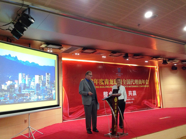 隨后外籍防水專家吉姆,青龍集團工程師羅兆學先生,外省營銷總監(jiān)王定中先生,網絡營銷經理賀金龍先生分別上臺演講,與廣大代理商交流防水技術,網絡營銷及2013年銷售,并展望充滿期待的2014年。