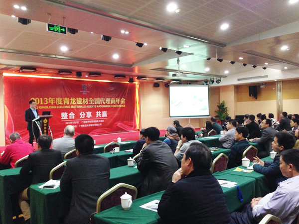 2014年1月7日,以“整合,分享,共贏”為主題的青龍集團2013年度全國代理商年會在廣西南寧相思湖國際大酒店隆重召開,來自全國各地青龍代理商和意向客戶共150余人參加了此次年會。這是一次激情的盛會,也是一次共贏的盛會。