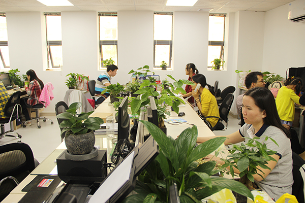 無論是個人辦公桌還是公共區(qū)域,辦公室的每個角落,都被充分裝點起來,擺放上各種適合辦公室的綠色植物,綠意盎然洋溢在整個新辦公室。
