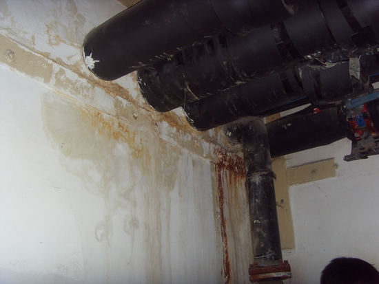 (4)穿墻管部位也是外防水薄弱的環(huán)節(jié),如選用卷材處理管根,該部位卷材搭接邊較多,很難做到所有部位搭接滿粘,另外穿墻管周邊混凝土振搗密實(shí)程度不夠,在管根周邊外防水出現(xiàn)問(wèn)題后,就會(huì)從接縫周邊向內(nèi)滲漏。
