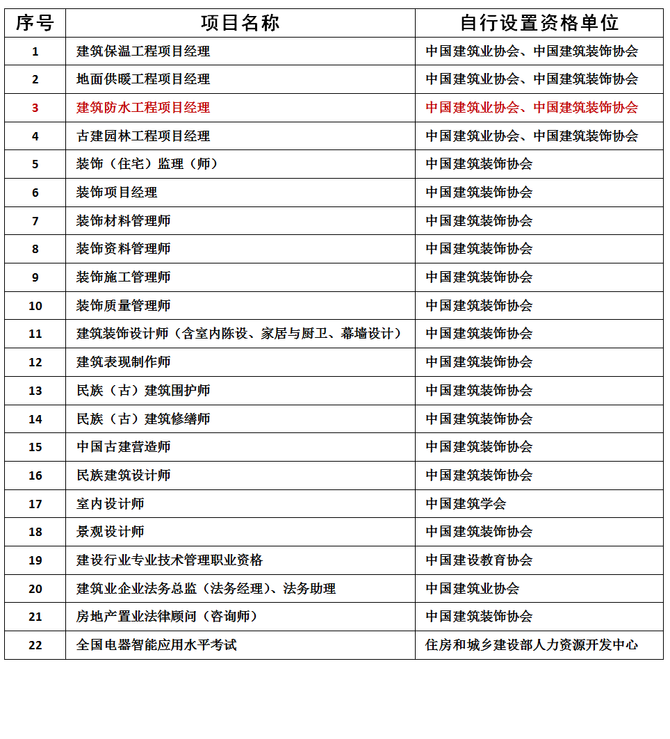 國務(wù)院決定取消的建筑保溫工程項目經(jīng)理、裝飾項目經(jīng)理、室內(nèi)設(shè)計師等22項職業(yè)資格,均為住房城鄉(xiāng)建設(shè)部有關(guān)直屬單位、部管社團自行設(shè)置的、沒有法律法規(guī)依據(jù)的水平評價類職業(yè)資格。