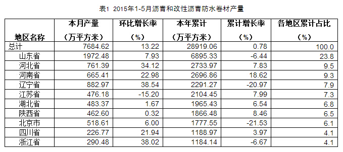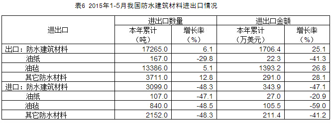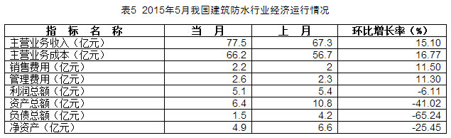 2015年5月我國防水行業(yè)經(jīng)濟(jì)數(shù)據(jù)分析