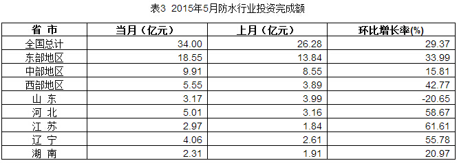 5月份,防水行業(yè)投資完成額34.00億元,同比增長29.37%。