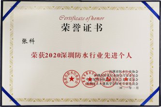 青龍防水張科榮獲深圳市防水行業(yè)協(xié)會(huì)“先進(jìn)個(gè)人”稱(chēng)號(hào)
