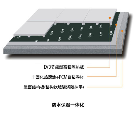 為有效改善屋面防水保溫綜合性能,使屋面防水保溫做到一勞永逸,條件允許可采用防水保溫一體化系統(tǒng)=結(jié)構(gòu)找坡+拋丸+非固化熱速涂+PCM自粘卷材+隔熱板,徹底根除滲漏,確保隔熱保溫的效能。這一系統(tǒng)也將成為未來屋面防水保溫的新理念。
