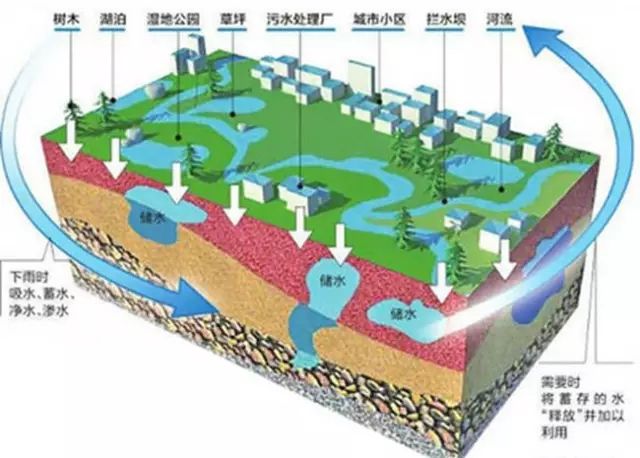 (1)海棉城市,是新一代城市雨洪管理概念,是指城市在適應(yīng)環(huán)境變化和應(yīng)對(duì)雨水帶來(lái)的自然災(zāi)害等方面具有良好的"彈性",也可稱之為"水彈性城市",國(guó)際通用術(shù)語(yǔ)為"低影響開(kāi)發(fā)雨水系統(tǒng)構(gòu)建"。下雨時(shí)吸水、蓄水、滲水、凈水,需要的時(shí)候?qū)?chǔ)蓄的雨水"釋放"并加以利用。國(guó)務(wù)院辦公廳出臺(tái)"關(guān)于推進(jìn)海綿城市建設(shè)的指導(dǎo)意見(jiàn)"指出,采用滲、滯、蓄、凈、用、排等措施,將70%的降的就地消納和利用。