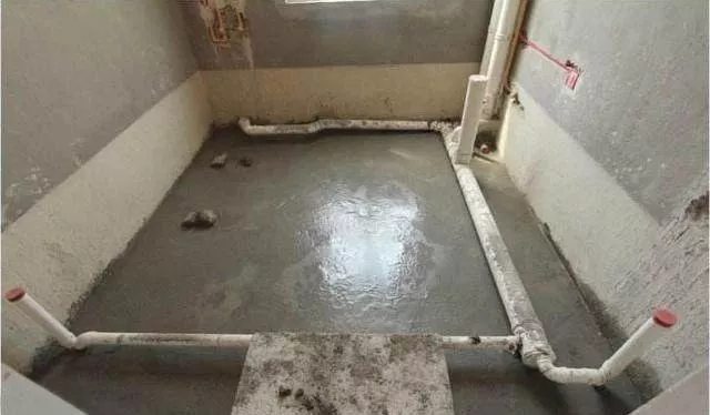 2、下沉層找平。隨后,我們根據(jù)安裝的排水管口為最低點,用水泥砂漿將地面做平,然后才能再做防水處理。這樣可以避免防水涂料因薄厚不均或防水涂料漏底而造成滲漏,找平層的流水坡向和坡度應(yīng)符合設(shè)計要求,流水做到暢通無積水。