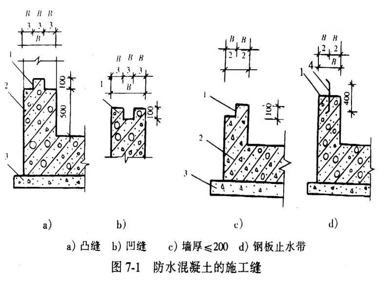 2、混凝土結(jié)構(gòu)的施工縫也是極易發(fā)生滲水的位。防止施工縫部位滲水可采取以下措施:首先施工縫應(yīng)按規(guī)定位置留設(shè),防水薄弱部位及底板上不應(yīng)留設(shè)施工縫,墻板上如必須留設(shè)垂直施工縫時,應(yīng)與變形縫相一致。其次施工縫的留設(shè)、清理及新舊混凝土的接漿等應(yīng)有統(tǒng)一部署,由專人認(rèn)真細(xì)致地做好。還有設(shè)計人員在確定鋼筋布置位置和墻體厚度時,應(yīng)考慮方便施工,以保證工程質(zhì)量。如發(fā)現(xiàn)施工縫滲水,可采用防水堵漏技術(shù)進(jìn)行修補。